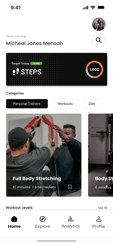 FitByJonetics is a modern fitness and wellness app focused on personalized training, step tracking, and analytics. The platform helps users achieve their fitness goals through personalized workout plans, daily step targets, and in-depth analytics. It features categories for Personal Trainers, Workouts, and Diet, as well as workout levels and recommendations for all fitness levels. Users can track their progress, engage with trainers, and access a comprehensive analytics dashboard for performance insights.